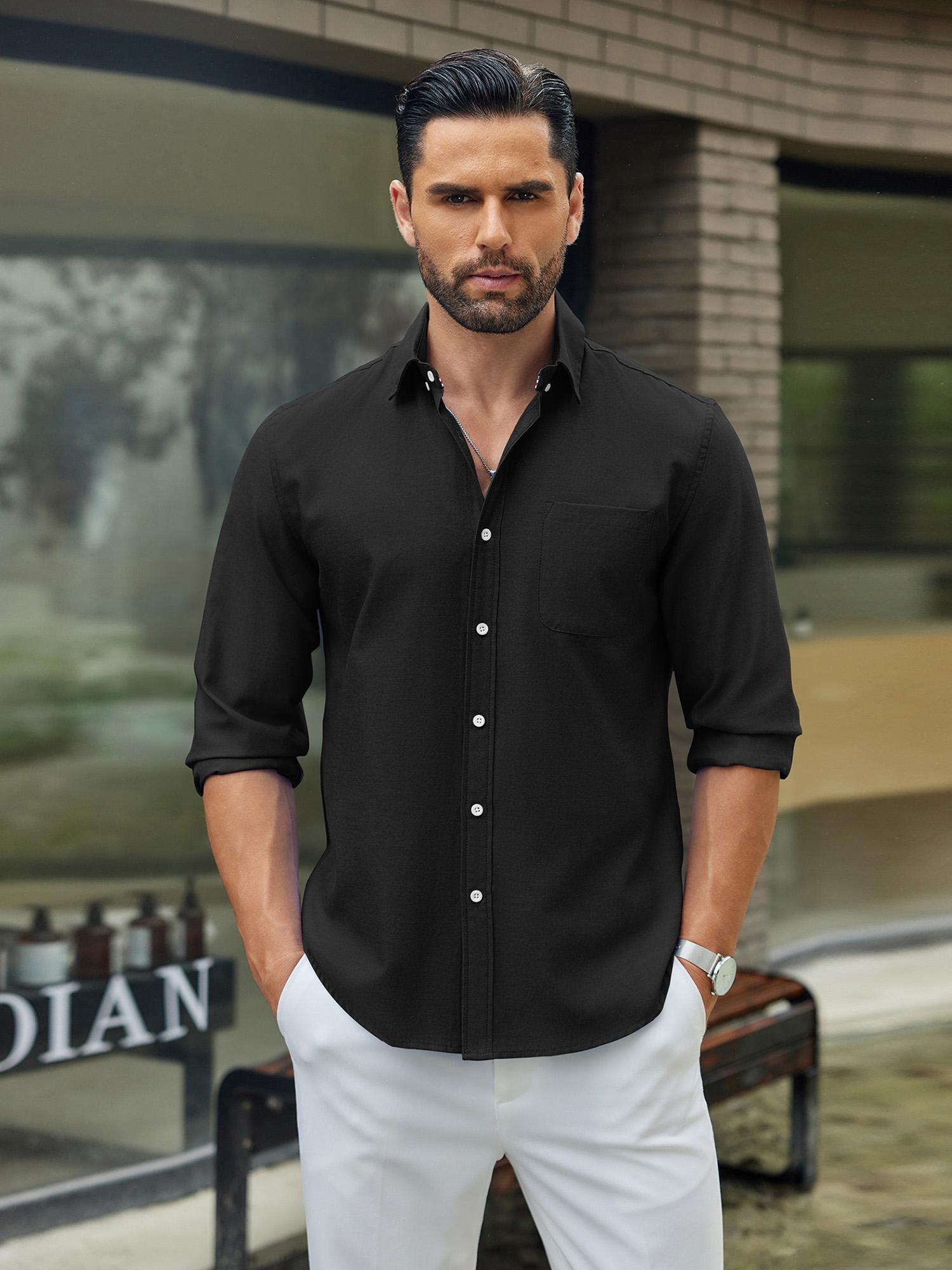 Men's Classic Long Sleeve Button-Down Shirt - Casual & Formal, Solid Color, Polyester, Perfect for Beach Weddings & Spring/Fall, PLUS SIZE Men's Classic Long Sleeve Button-Down Shirt - Casual & Formal, Solid Color, Polyester, Perfect for Beach Weddings & Spring/Fall, PLUS SIZE