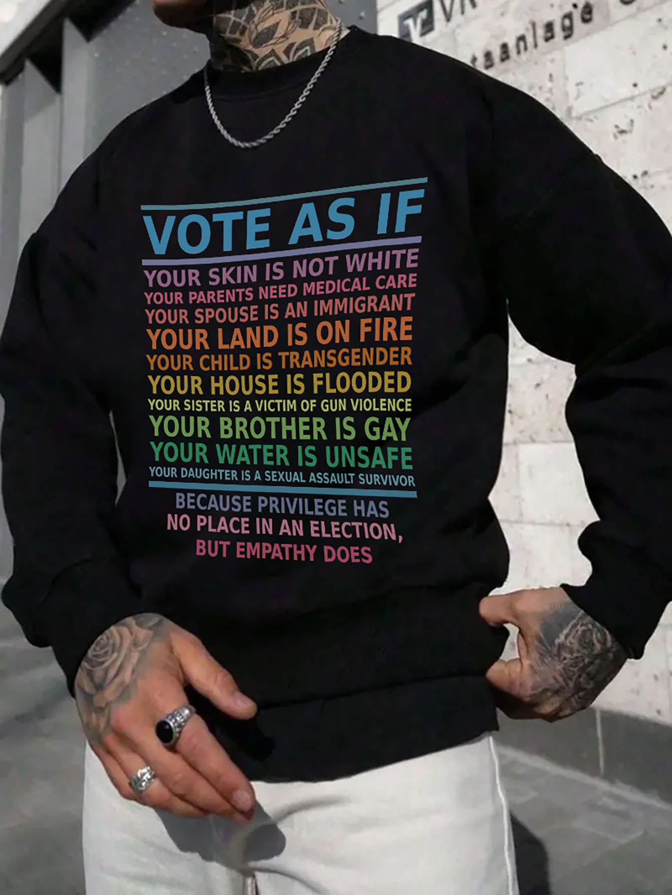 • 1pc Men'S Plus Size Casual French Terry Sweatshirt with Printed Empathy Message, Round Neck, Long Sleeve, Stretch Fabric, Regular Fit Top for Autumn and Winter