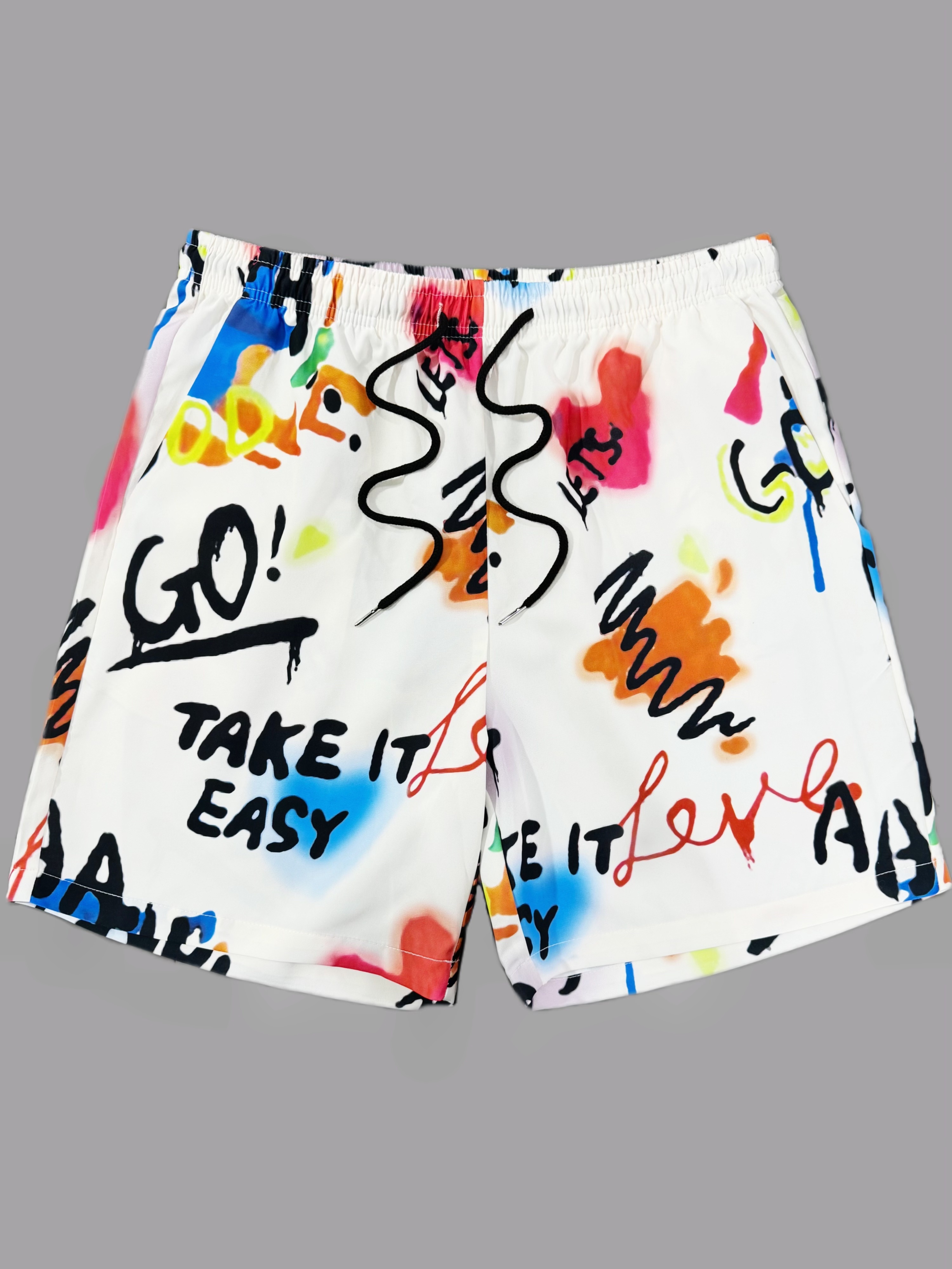 • Men's Summer Fashion Printed Shorts - Casual, Drawstring Waist, Polyester, Non-Stretch Fabric, Machine Washable