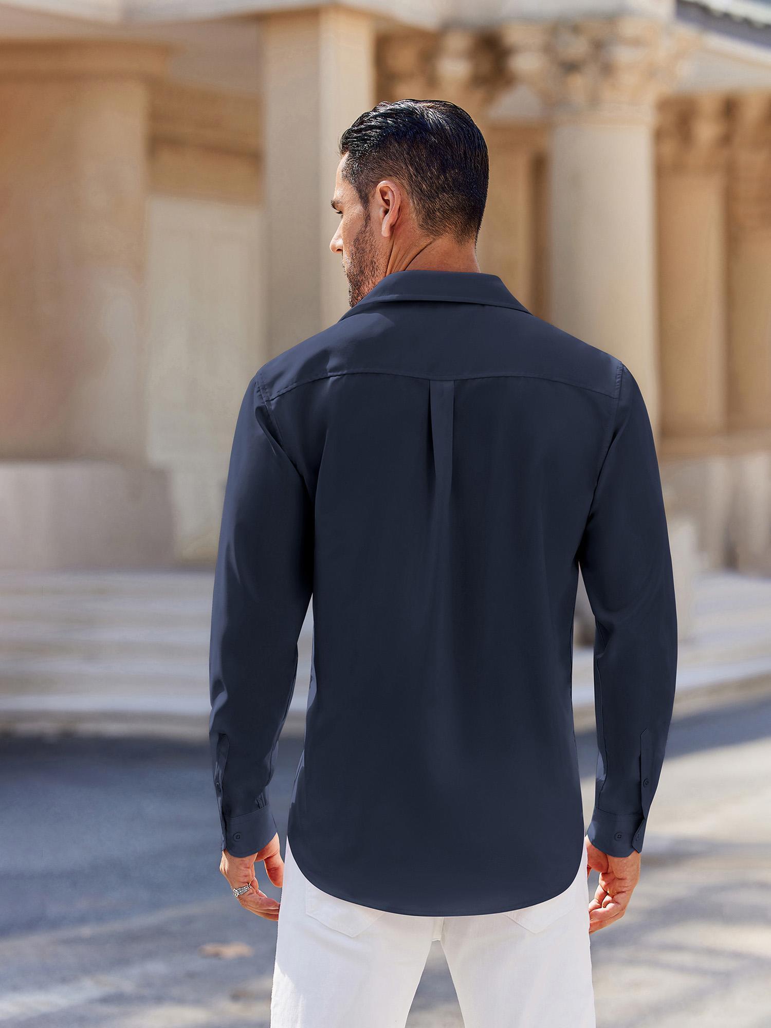 Men's Stretch Wrinkle-Free Long Sleeve Casual Button Down Shirts Muscle Fit Dress Shirts Men's Stretch Wrinkle-Free Long Sleeve Casual Button Down Shirts Muscle Fit Dress Shirts