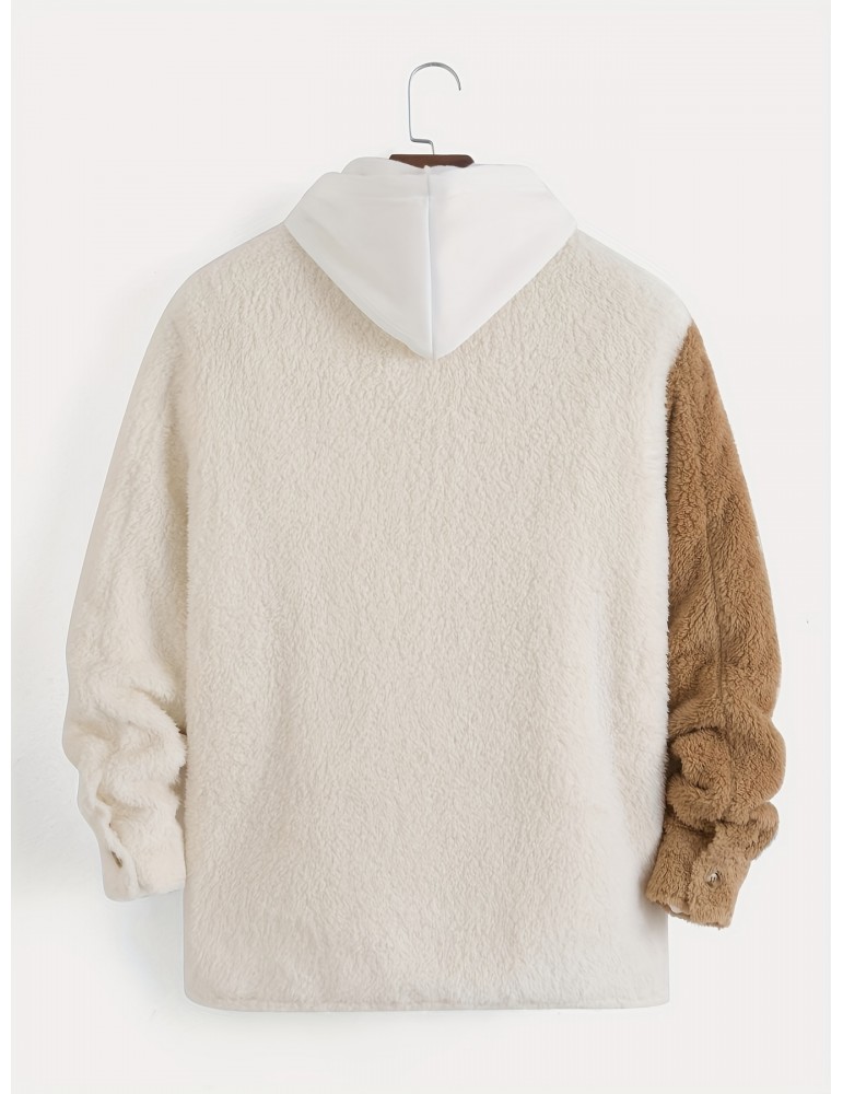 • Reversible Fleece Jacket for Men - Stylish Contrast Color Design, Double Patch Pockets, Perfect for Autumn and Winter