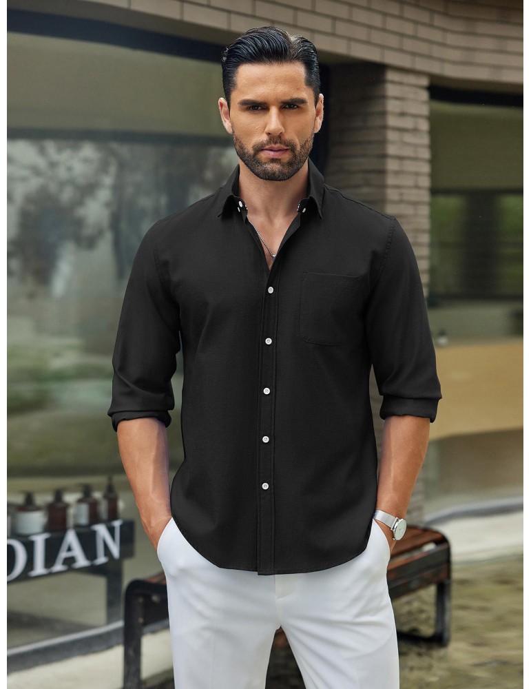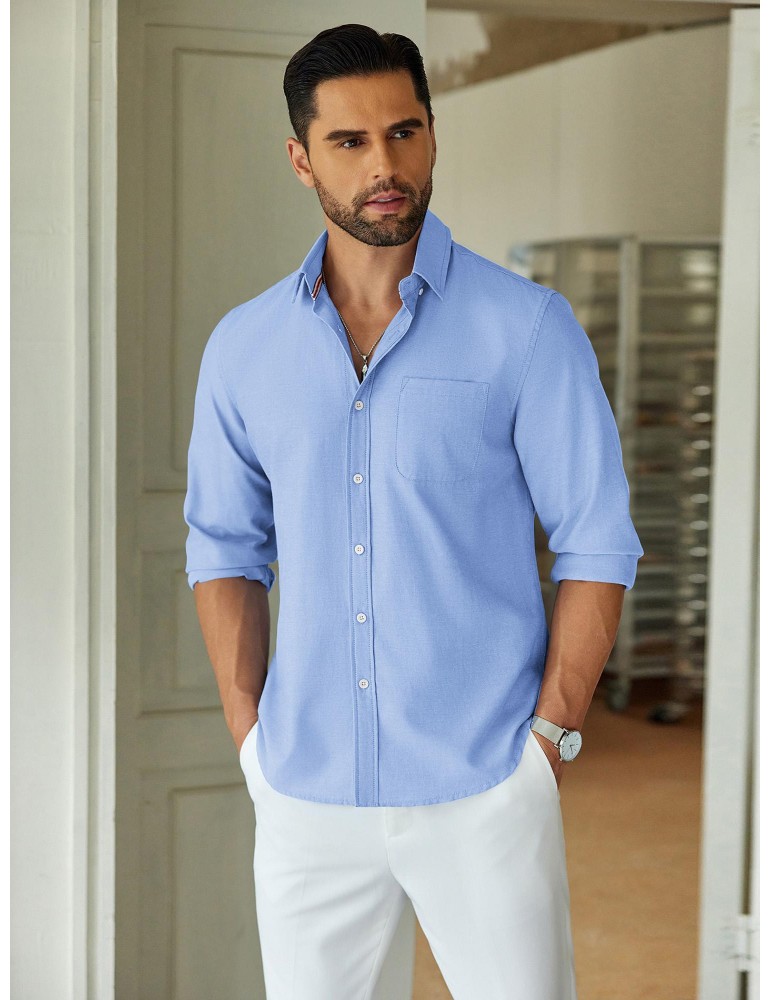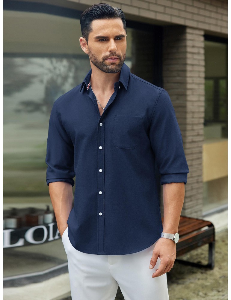 Men's Classic Long Sleeve Button-Down Shirt - Casual & Formal, Solid Color, Polyester, Perfect for Beach Weddings & Spring/Fall, PLUS SIZE Men's Classic Long Sleeve Button-Down Shirt - Casual & Formal, Solid Color, Polyester, Perfect for Beach Weddings & Spring/Fall, PLUS SIZE