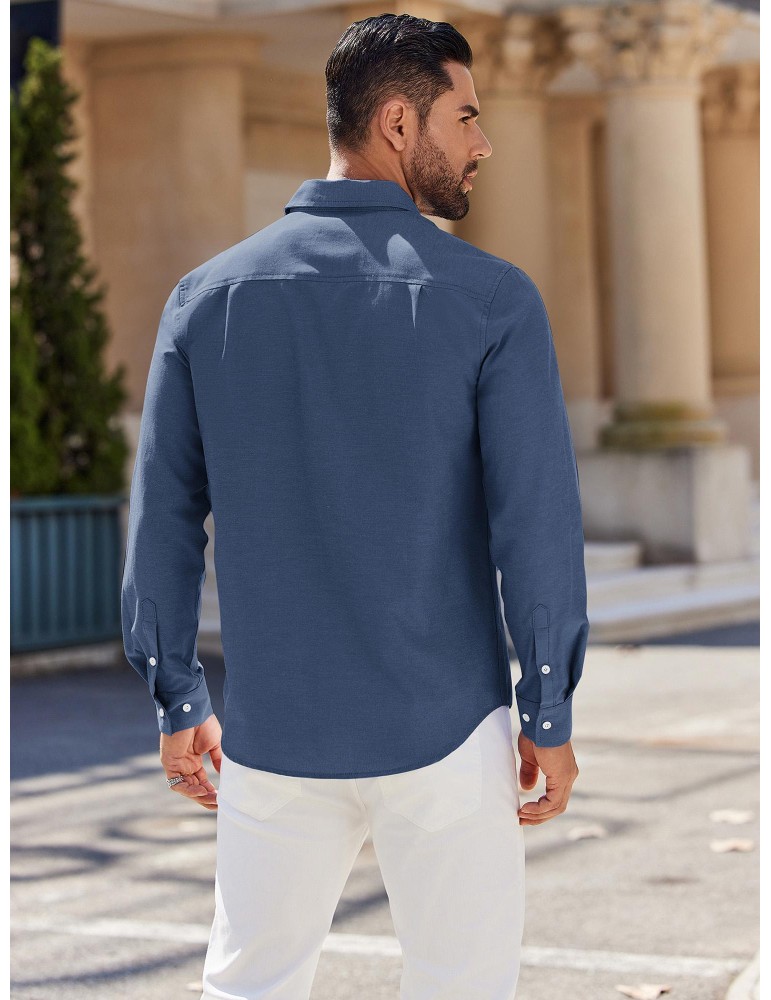 • Men'S Plus Size Cotton Oxford Casual Shirts - Long Sleeve, Regular Fit, Non-Stretch, Solid Color, with Button Details and Pocket, for Work Style, Spring/Fall