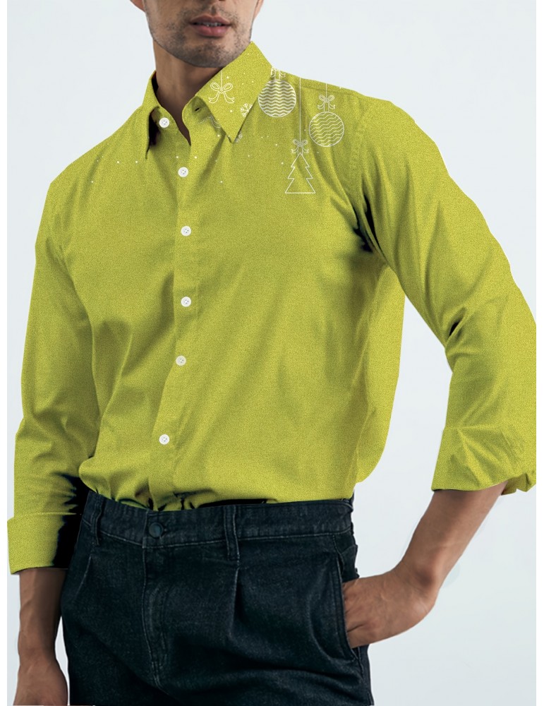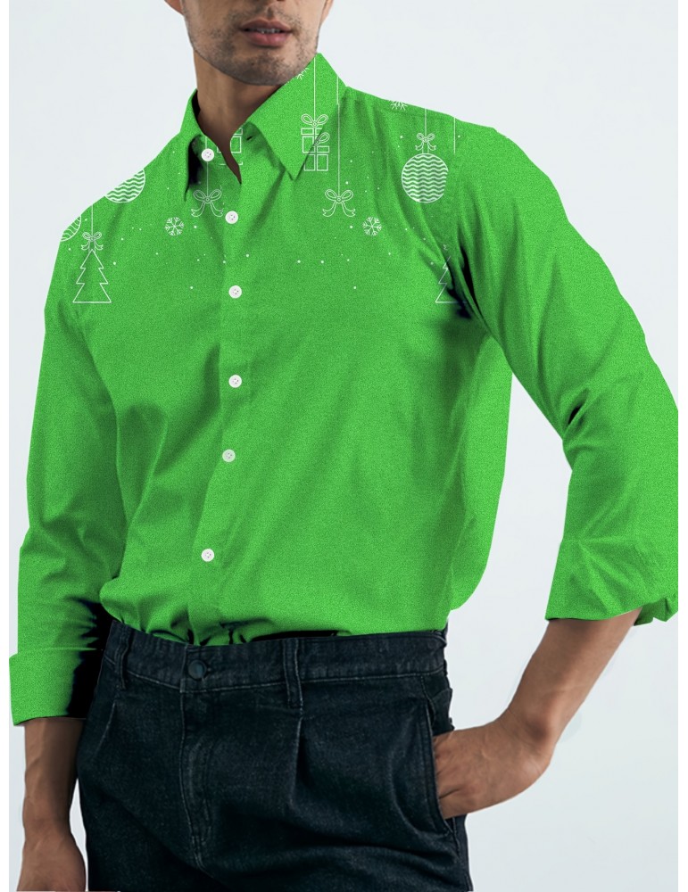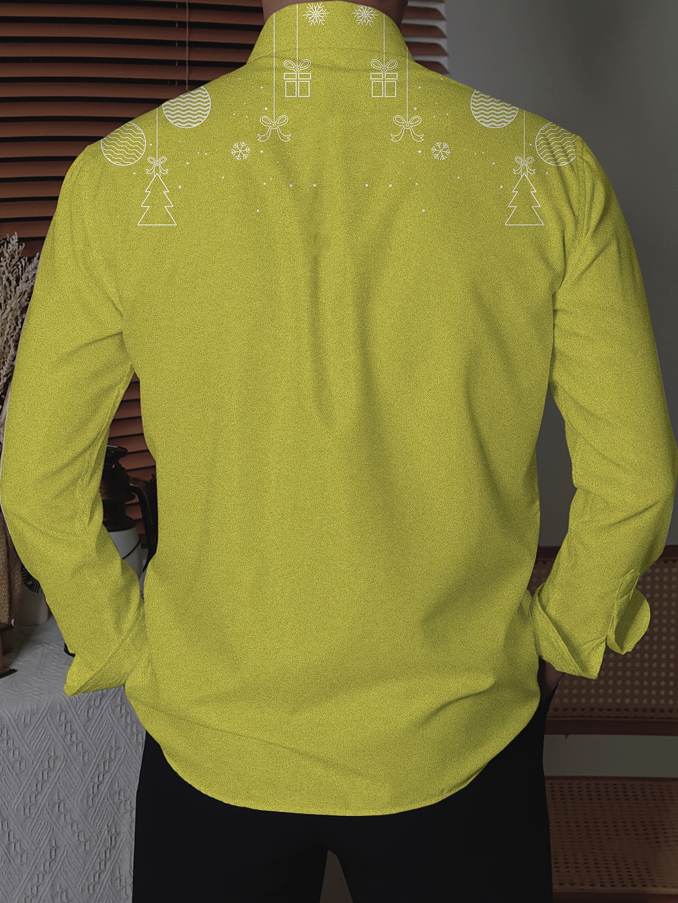 • 1pc Festive Men'S Long Sleeve Button-Down Shirt, Christmas Cartoon Pattern, Casual Party Style, Polyester, Regular Fit, Non-Stretch, Spring/Autumn Season, Solid Color, Plus Size