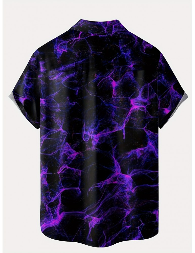 • Plus Size Lapel Mens "Moire" Pattern Hawaiian Shirt, Top Blouse Button Down Shirts, Men's Clothings For Summer