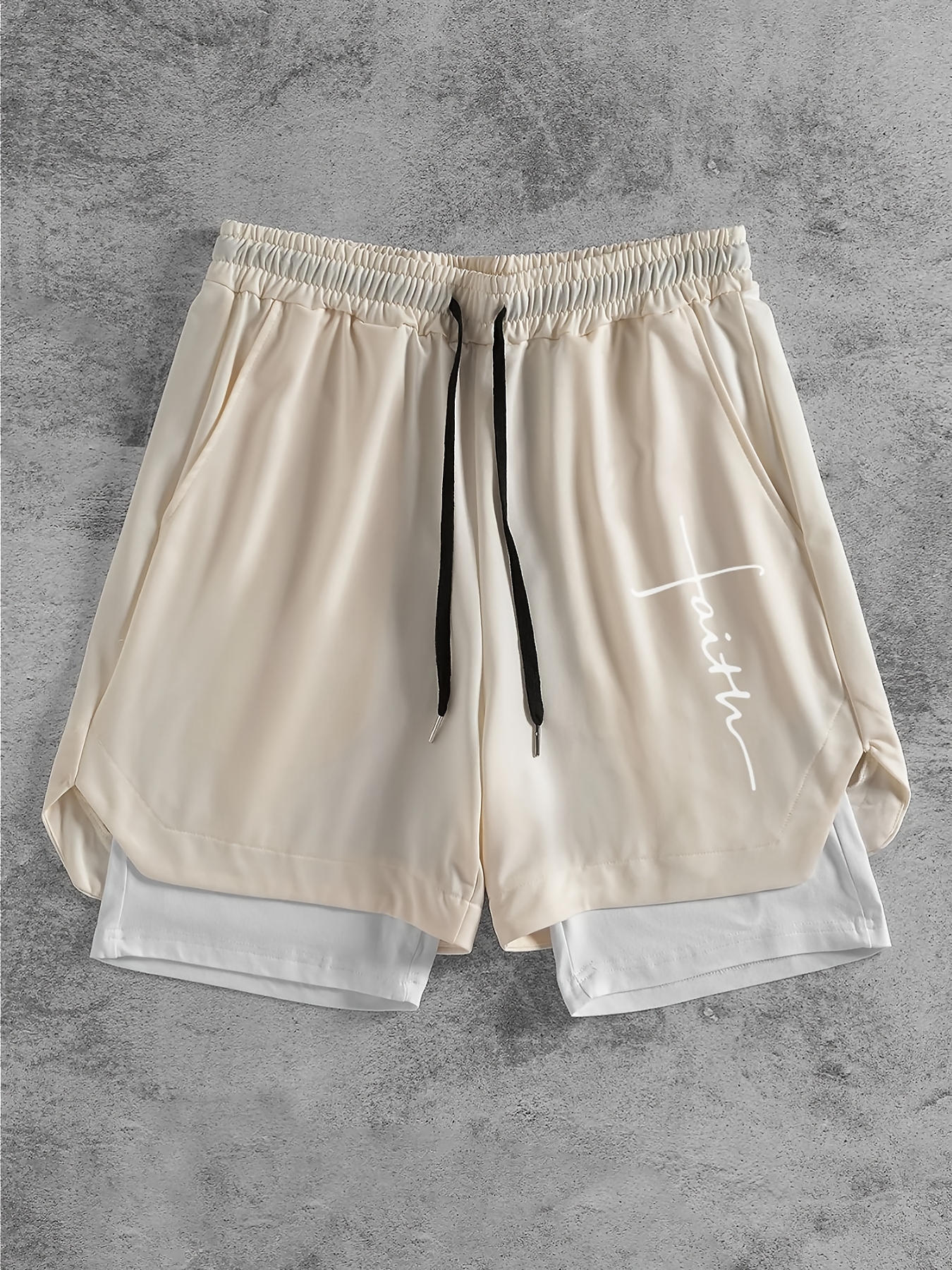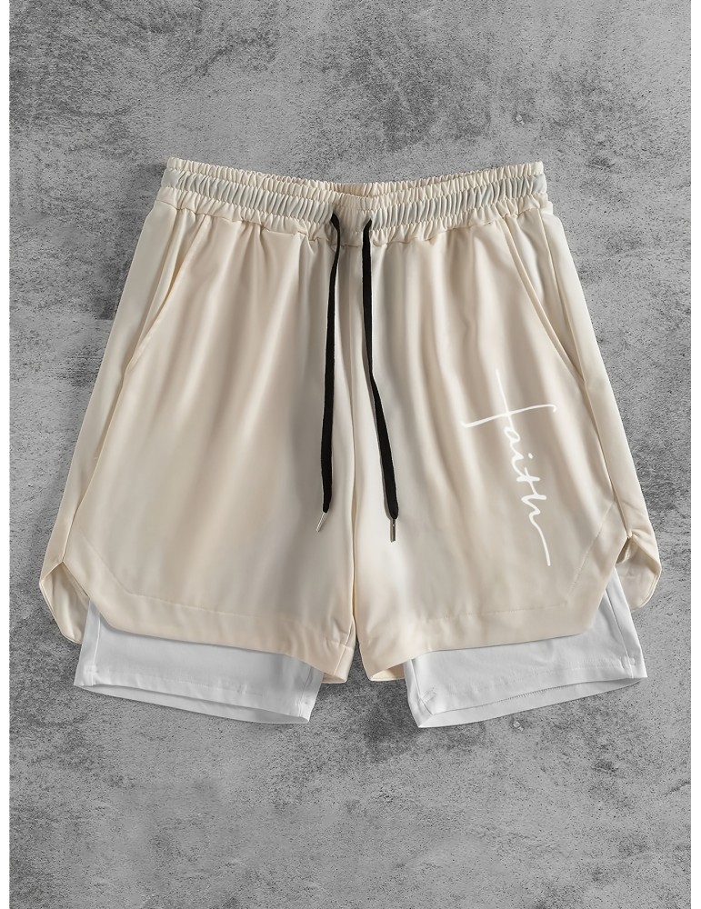• Men's Stylish Faux Two-Piece Shorts with Drawstring & Pockets - Comfortable, Vintage Geometric Print for Travel & Sports