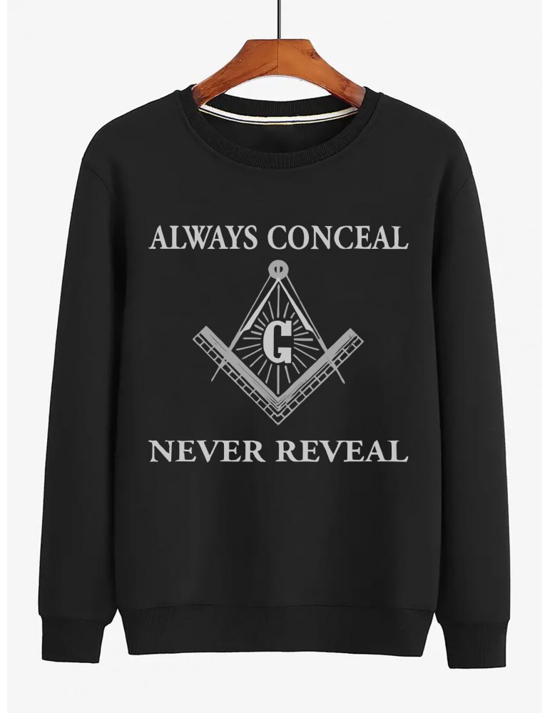 • Plus Size French Terry Crew Neck Sweatshirt, Casual Long Sleeve Knit Top, Comfortable Regular Fit Pullover with Slight Stretch, with Masonic-Inspired Print, for Autumn and Winter