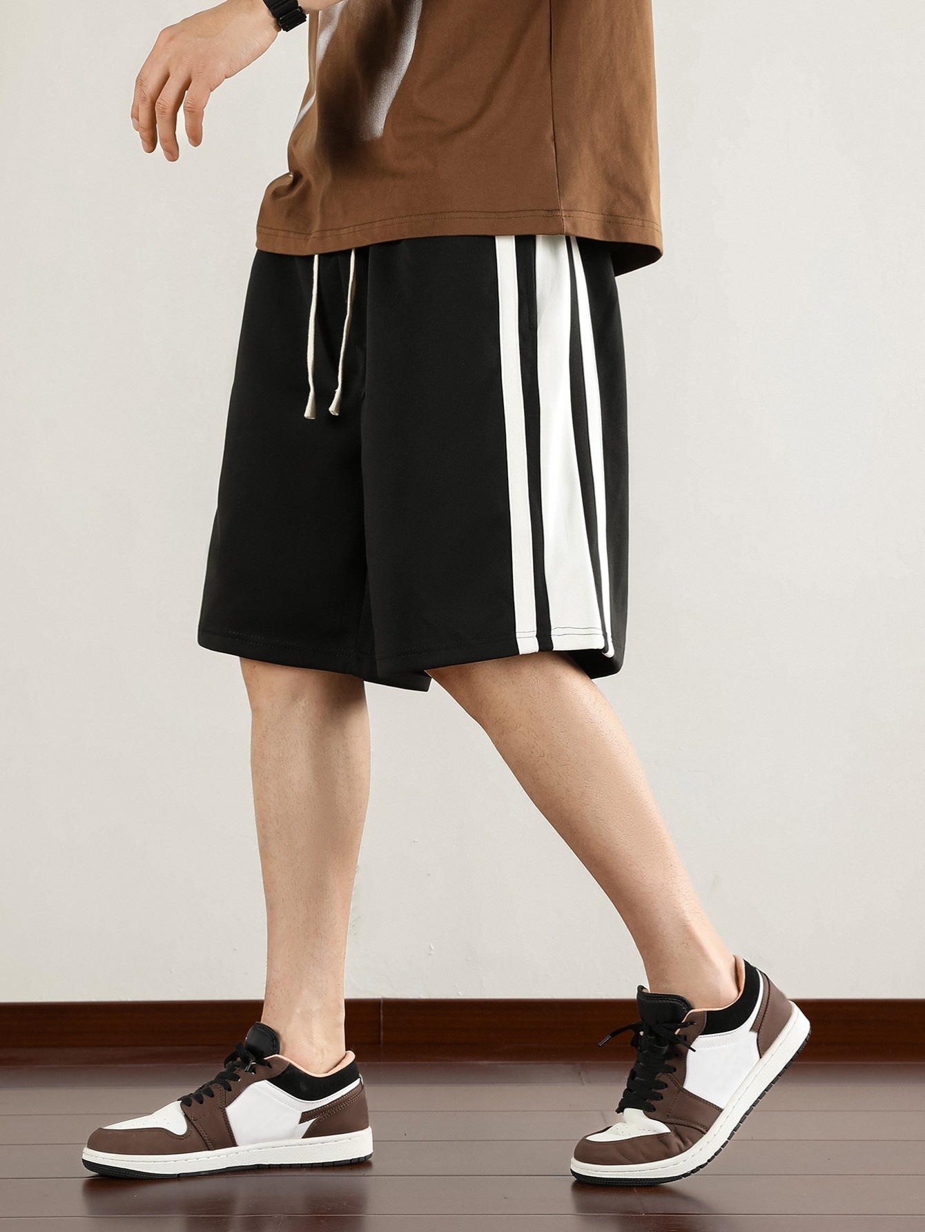 D42-Men's versatile striped mid-rise casual shorts - drawstring, slight stretch, machine washable, loose hem - perfect for spring and summer sports and outdoor fitness
