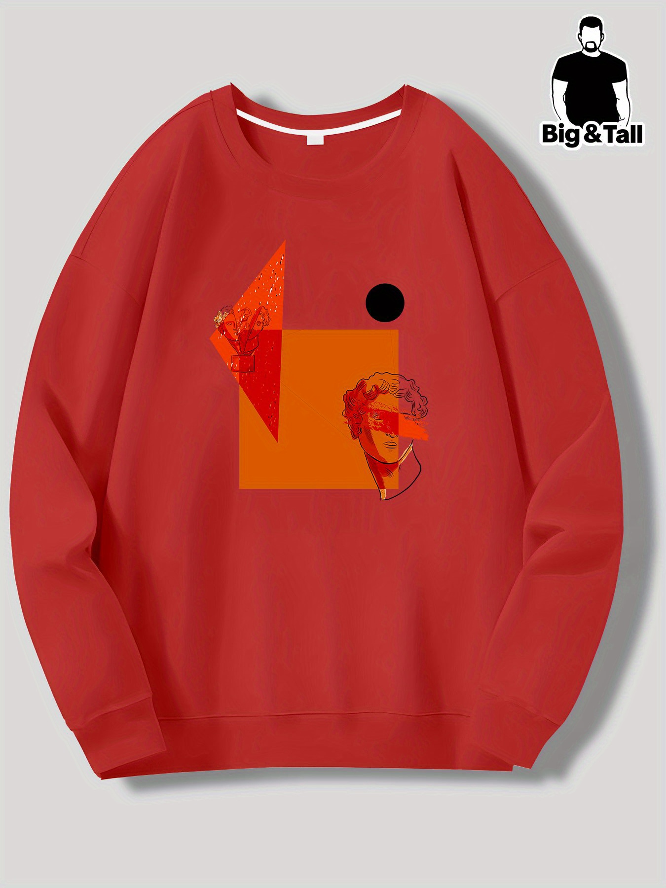 Geometric Pattern Print Plus Size Men's Crew Neck Long Sleeve Sweatshirt – Casual Fashionable Pullover