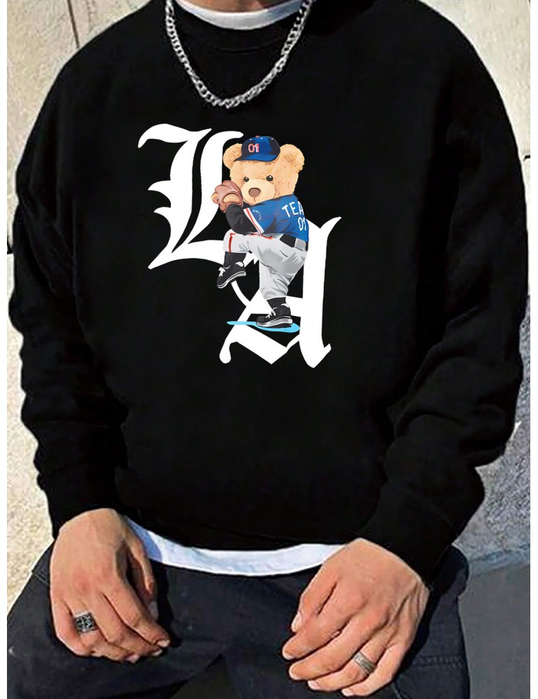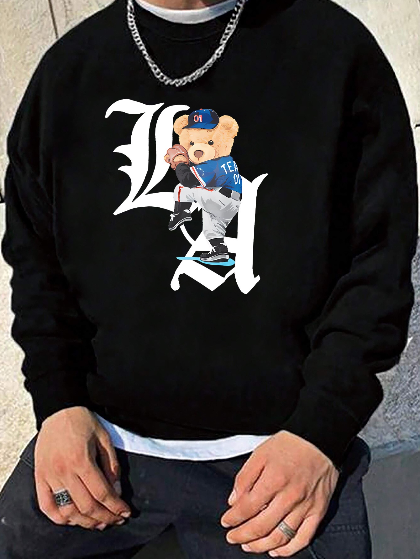 • LA Print Men's Versatile Long Sleeve Comfortable Hoodie, Casual Spring/ Autumn Top, Men's Outdoor Clothing