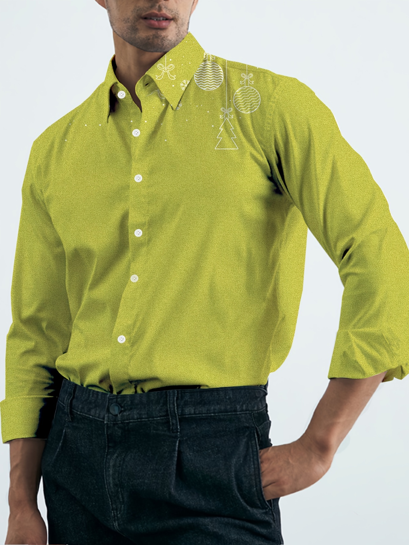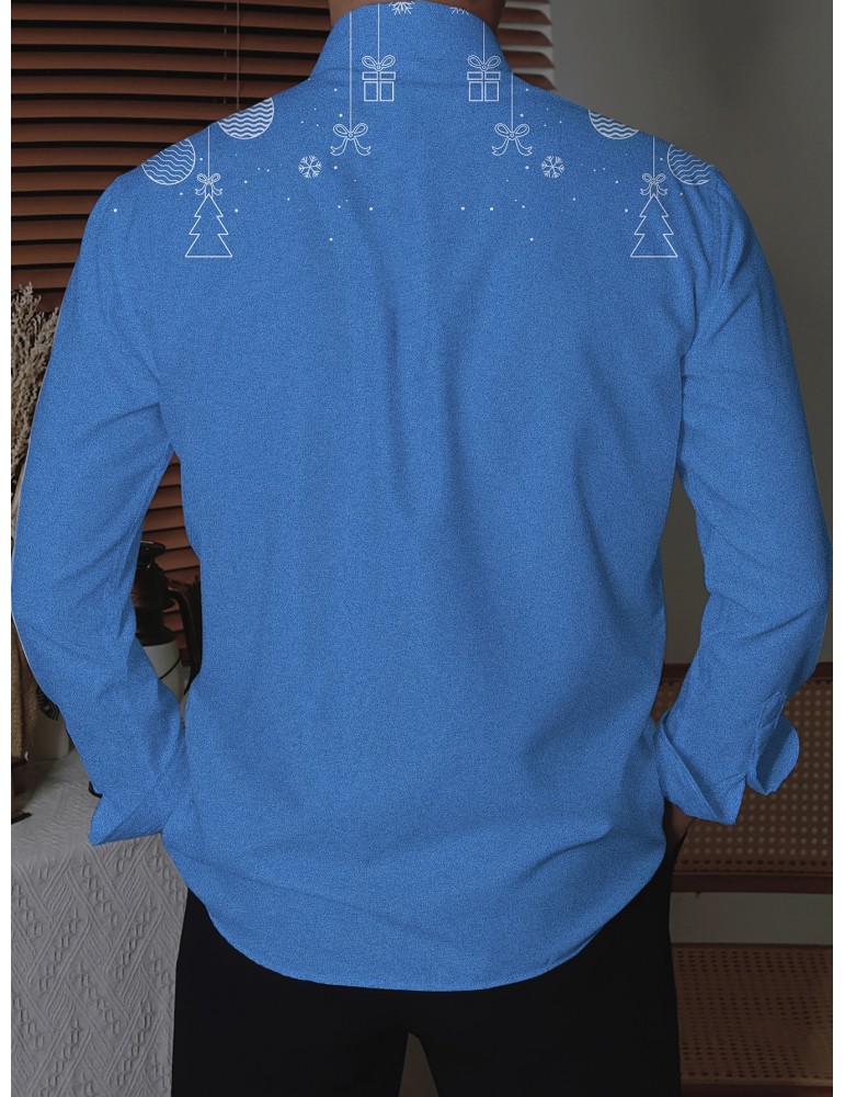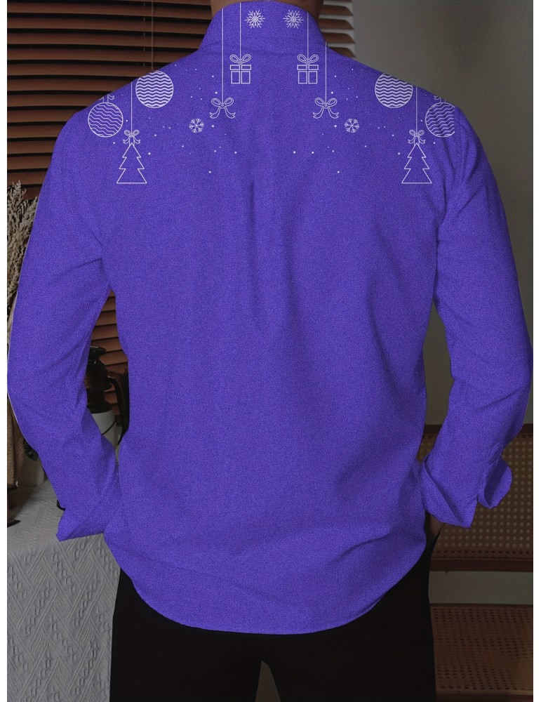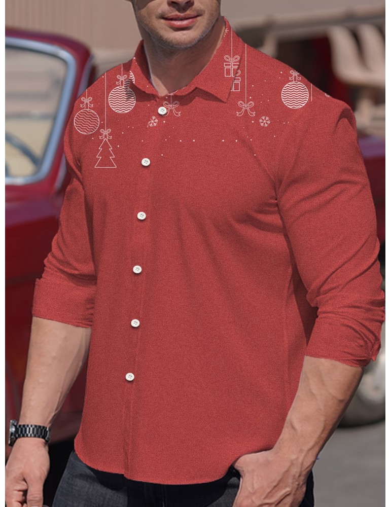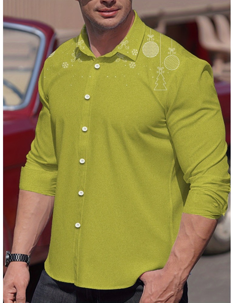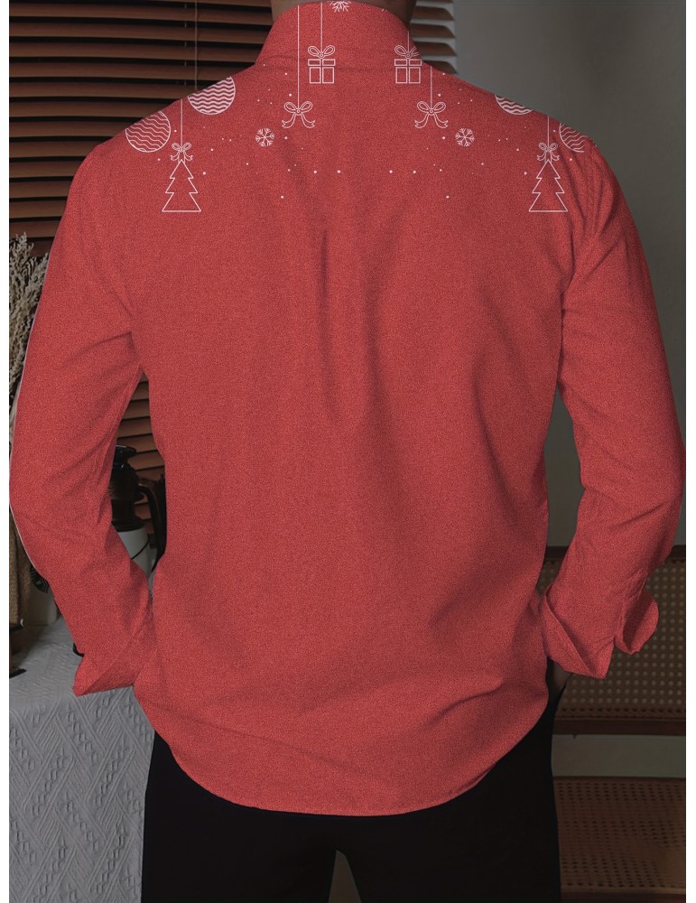 • 1pc Festive Men'S Long Sleeve Button-Down Shirt, Christmas Cartoon Pattern, Casual Party Style, Polyester, Regular Fit, Non-Stretch, Spring/Autumn Season, Solid Color, Plus Size