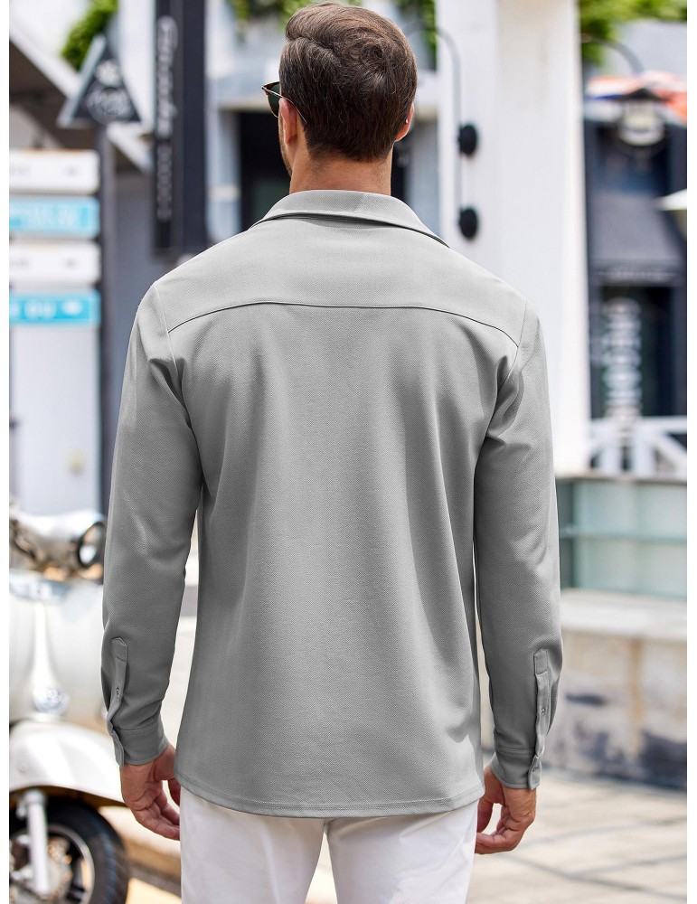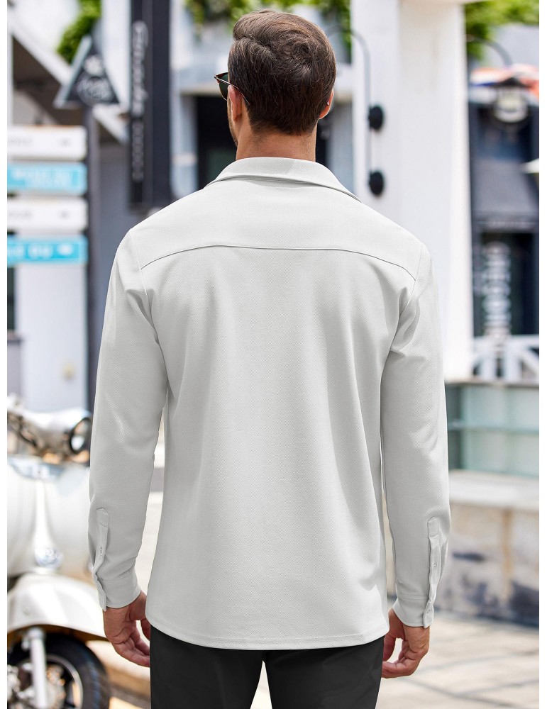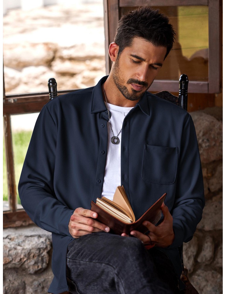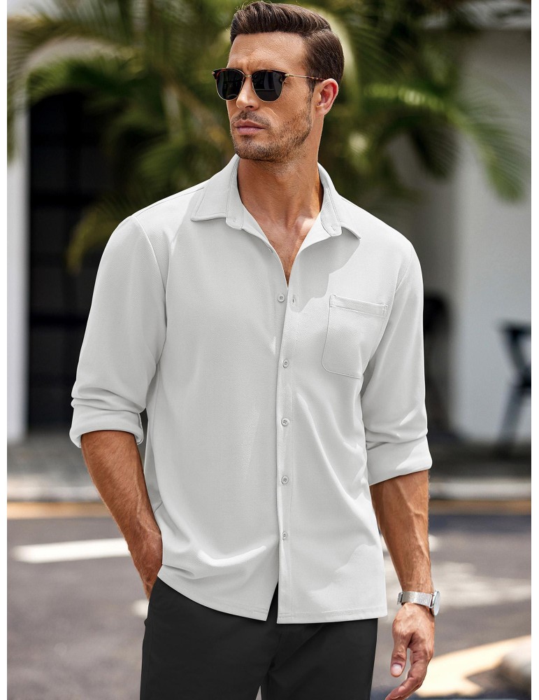 Men's Classic Long Sleeve Button-Down Shirt - Casual & Formal, Solid Color, Polyester, Perfect for Beach Weddings & Spring/Fall, PLUS SIZE Men's Classic Long Sleeve Button-Down Shirt - Casual & Formal, Solid Color, Polyester, Perfect for Beach Weddings & Spring/Fall, PLUS SIZE