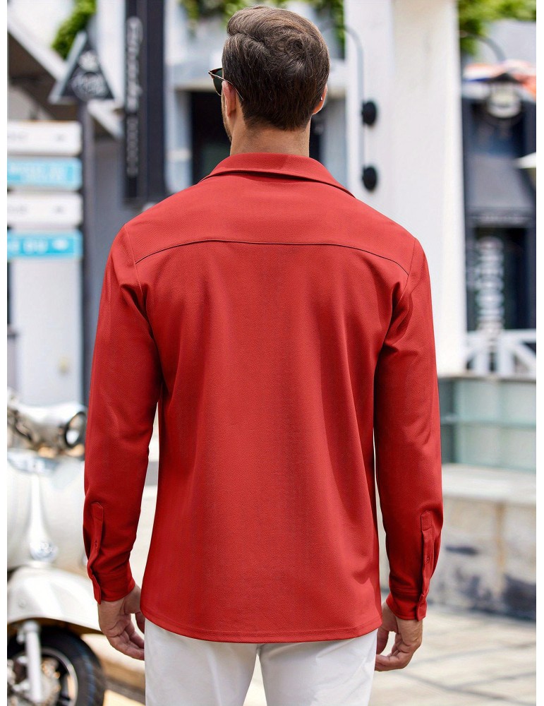 Men's Classic Long Sleeve Button-Down Shirt - Casual & Formal, Solid Color, Polyester, Perfect for Beach Weddings & Spring/Fall, PLUS SIZE