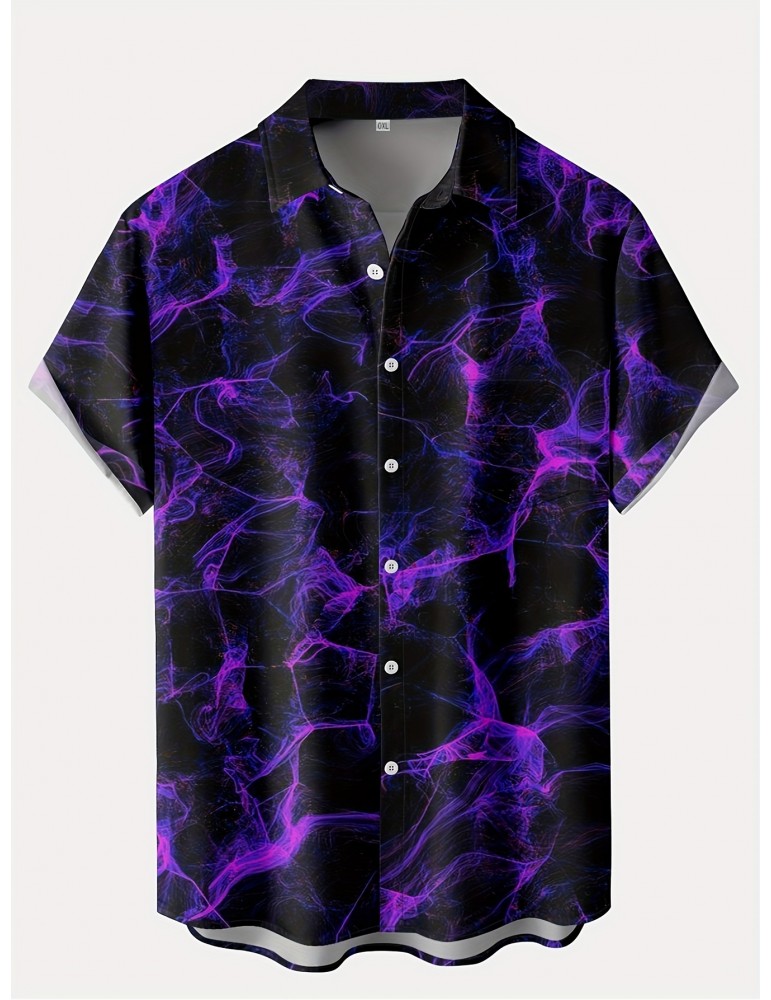 • Plus Size Lapel Mens "Moire" Pattern Hawaiian Shirt, Top Blouse Button Down Shirts, Men's Clothings For Summer