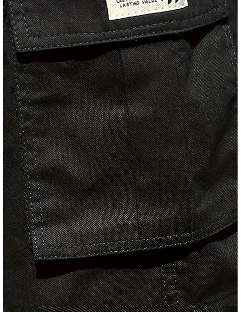 • Men's Fashion Cargo Shorts with Drawstring Waist, Solid Color, Polyester, Casual Workwear Style, Loose Fit, Woven, Non-Stretch Fabric, Multiple Pockets