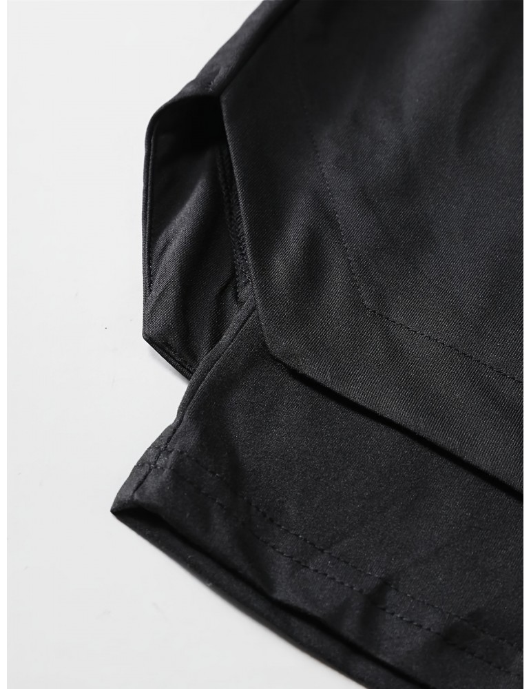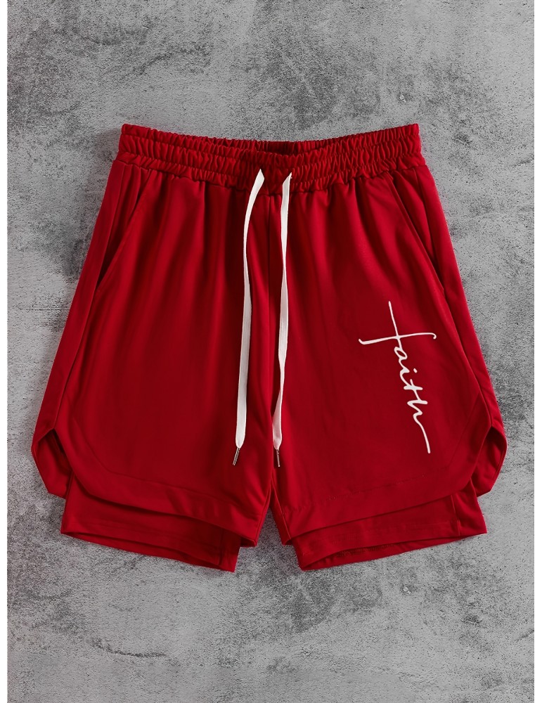 • Men's Stylish Faux Two-Piece Shorts with Drawstring & Pockets - Comfortable, Vintage Geometric Print for Travel & Sports