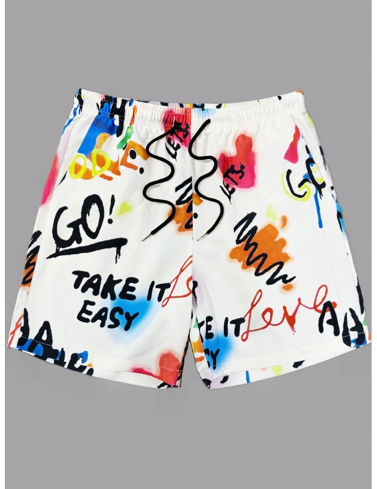 • Men's Summer Fashion Printed Shorts - Casual, Drawstring Waist, Polyester, Non-Stretch Fabric, Machine Washable