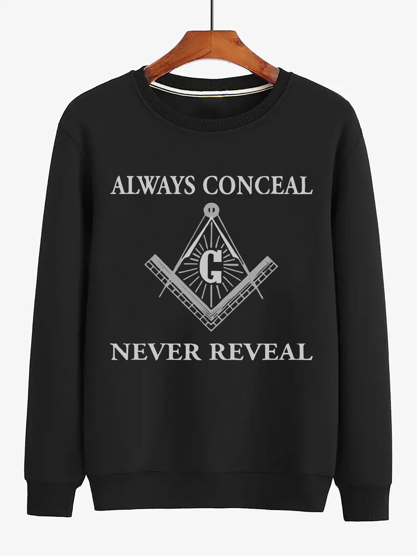 Plus Size French Terry Crew Neck Sweatshirt, Casual Long Sleeve Knit Top, Comfortable Regular Fit Pullover with Slight Stretch, with Masonic-Inspired Print, for Autumn and Winter
