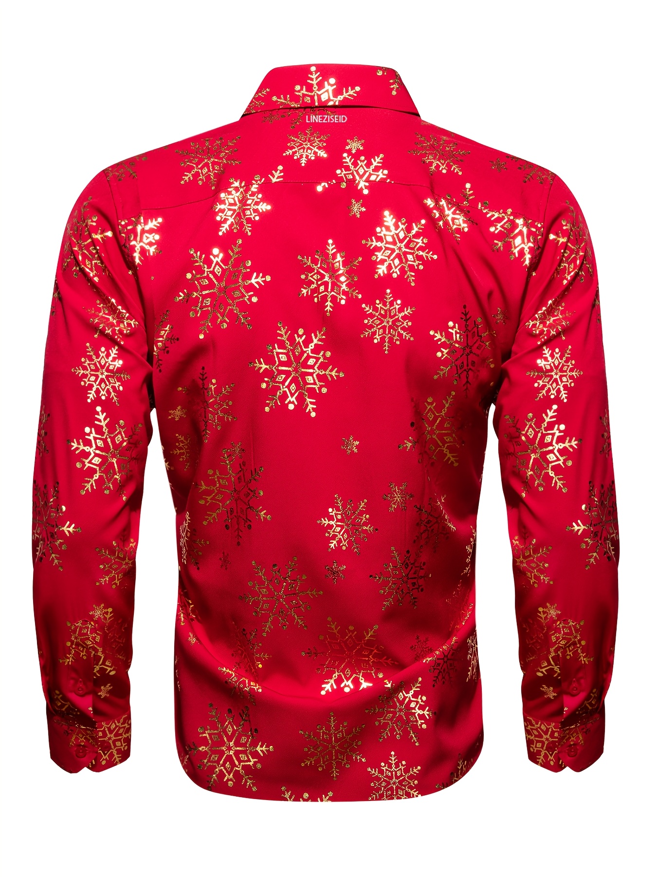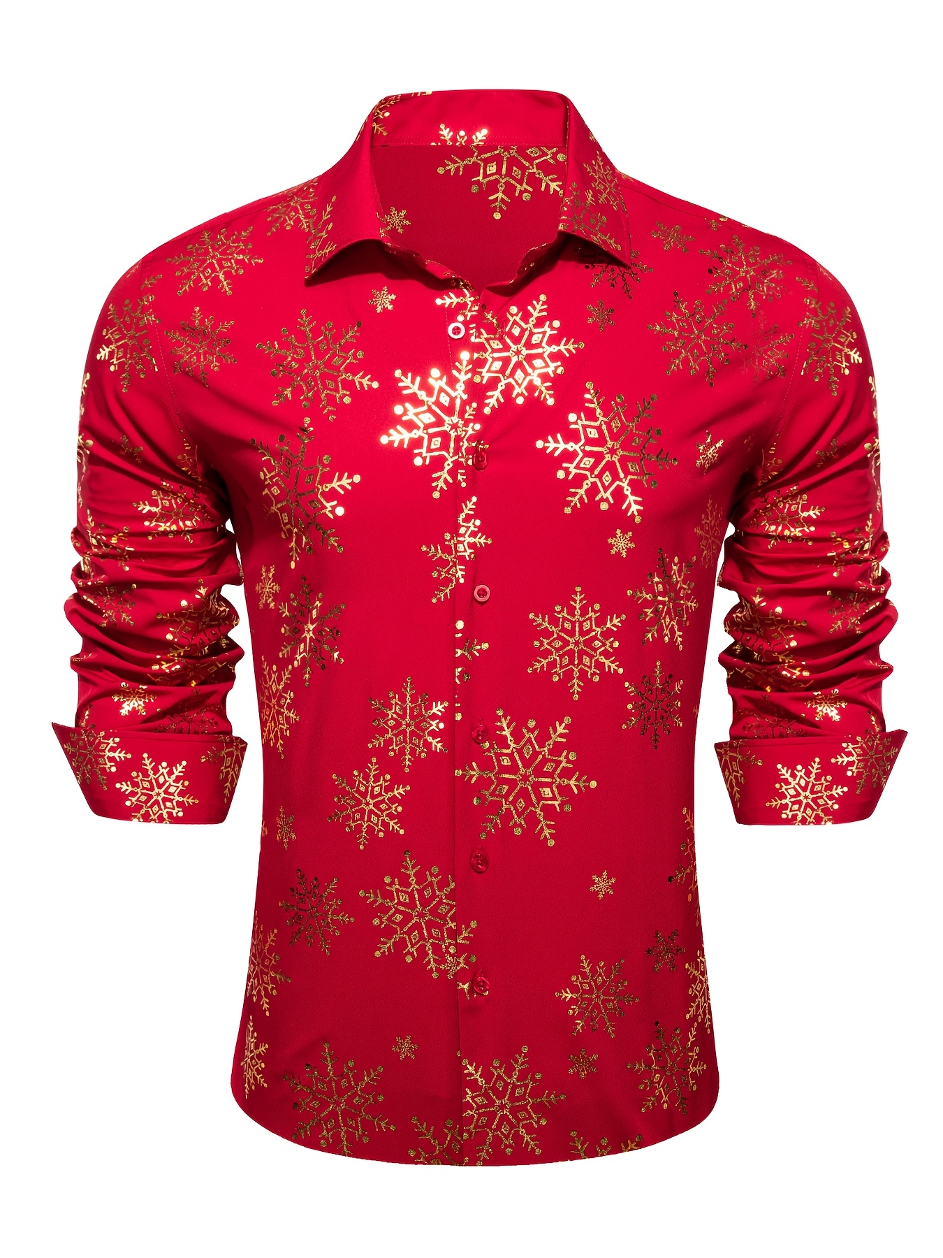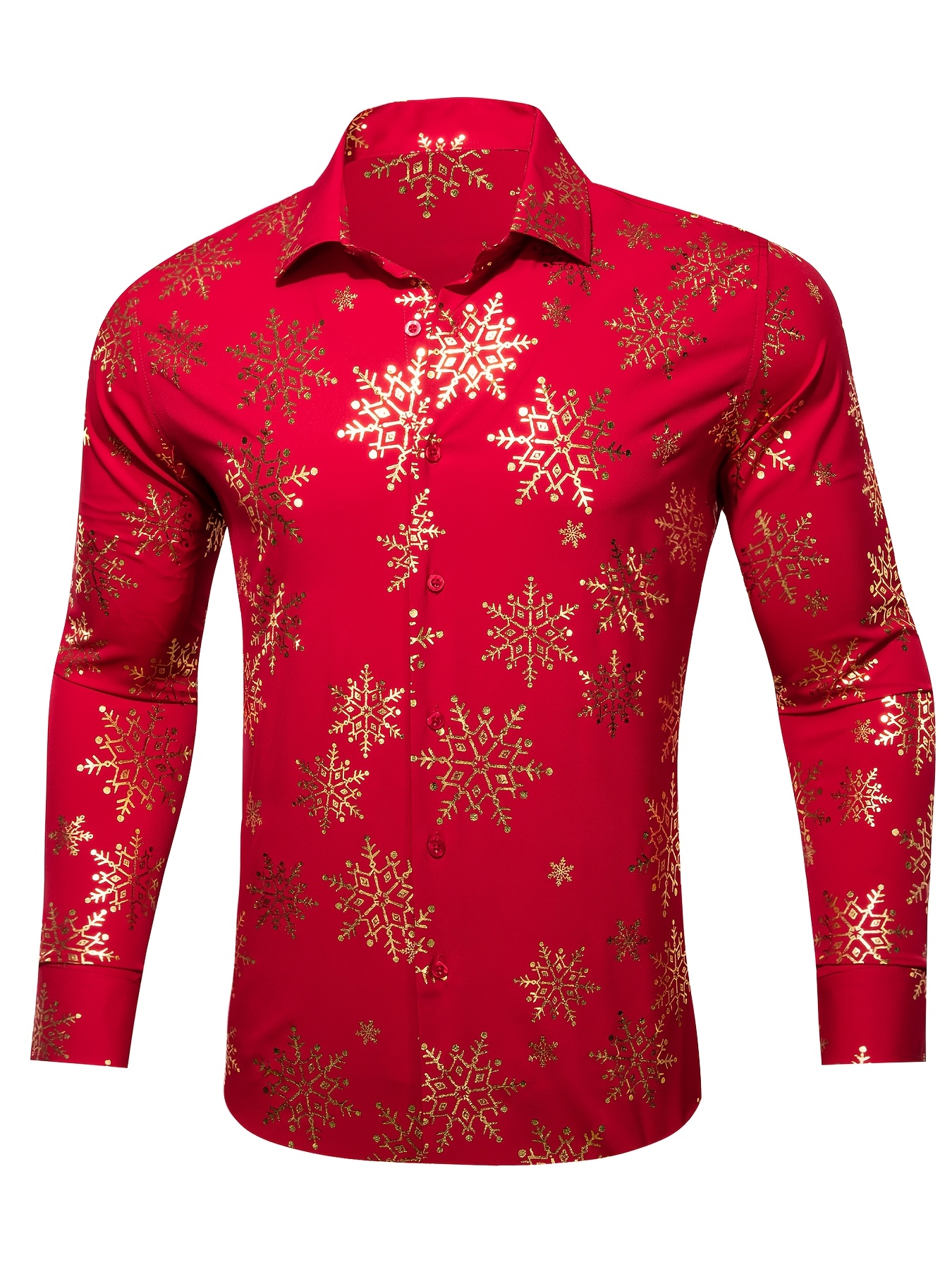 • Yuletide Glow, Plus Size Men's Christmas Shirt - Festive Red & Golden Snowflake Design, Polyester, Button-Up Collar, Perfect for Holiday Parties, PLUS SIZE